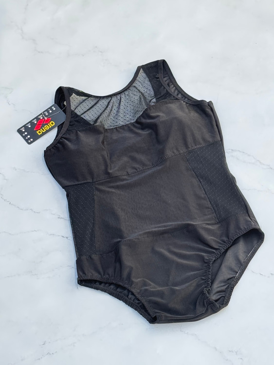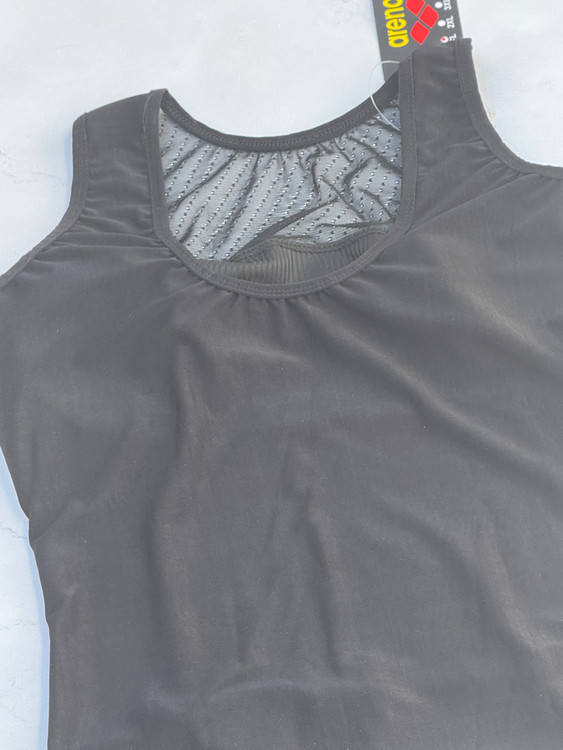 مایو اسلیپ مشکی با پارچه ضد کلر، انتخابی ایدهآل برای شناگران حرفهای و آماتور است. طرح یقه توری این مایو ظاهری شیک و زنانه ایجاد کرده و پارچه ضد کلر، ماندگاری بالایی در برابر آب استخر تضمین میکند.