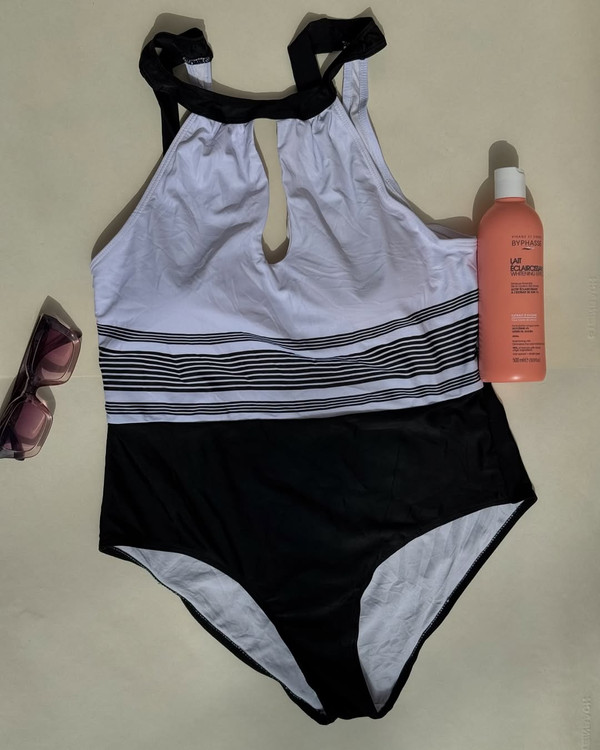 «وقتی شیکپوشی حتی لب ساحل هم یادت نمیره… مایوی مشکیسفید ما با طراحی خاص یقه و جزئیات راهراه، ترکیب کاملی از ظرافت و فرمدهی برای بدنت مشخصات مایو: • مدل: یکتکه هالتر با یقه کلیدی (Keyhole neckline) • رنگ: ترکیب سفید، مشکی و راهراه مشکی • استایل: کلاسیک و شیک با طراحی کشیدهکنندهی فرم بدن • ویژگی خاص: طراحی راهراه در قسمت میانی برای باریکتر نشان دادن کمر •جنس: پارچه شنا کشی با کیفیت بالا، مناسب استفاده طولانی در آب و وارداتی • قابلیتها: فیت عالی، کاپدار، پشت گردنی قابل تنظیم سایزبندی موجود :۴۸،۵۰ فی ناقابل:۷۹۰ از طریق و تلگرام ارسال به