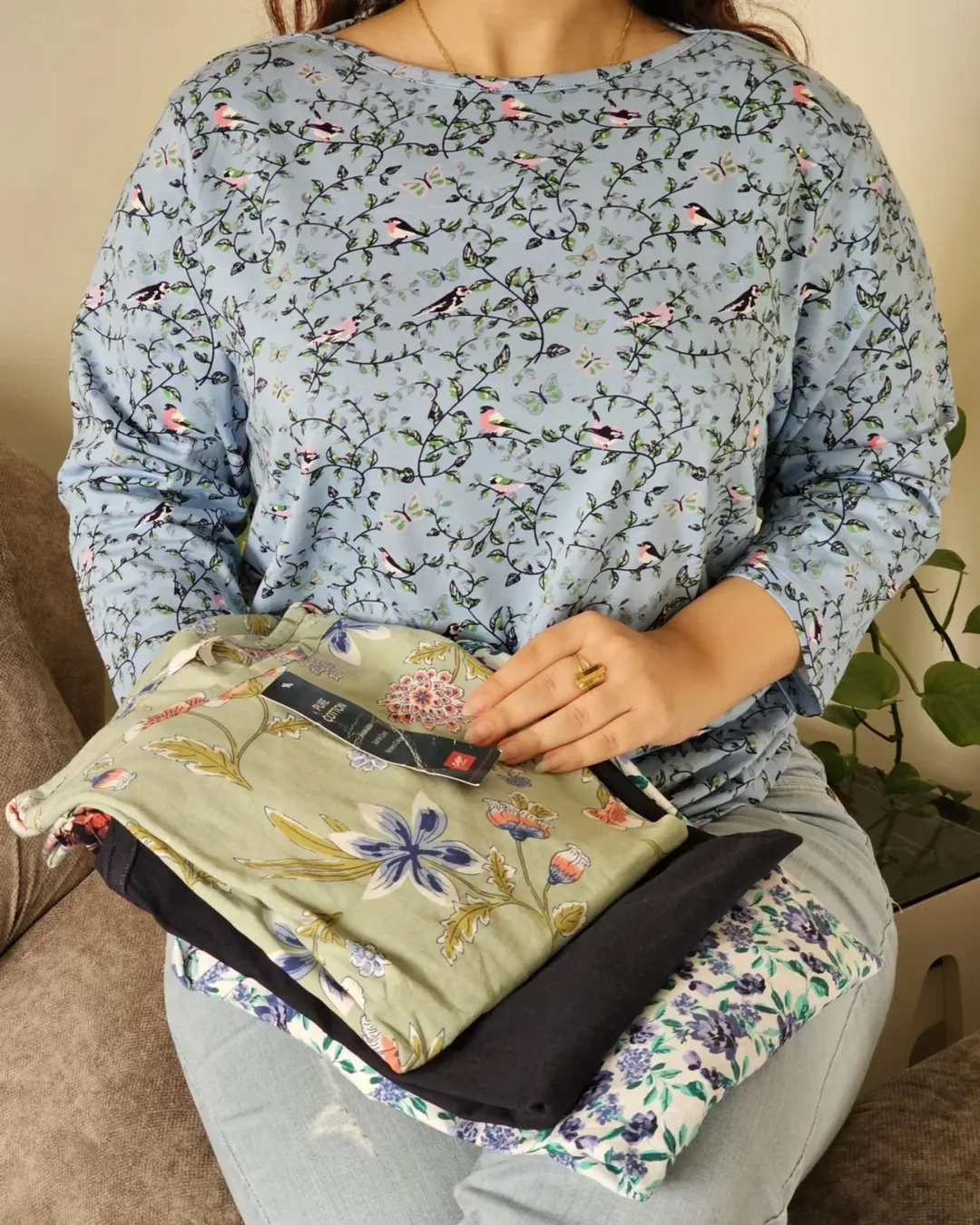 بلوز آستین سه ربع برند per cotton وارداتی کاملا نخی خنک سایز ۴۲،۴۴،۴۶