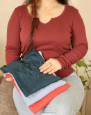 جزئیات : بلوز آستین دار زنانه یقه دلبری کبریتی وارداتی نخی