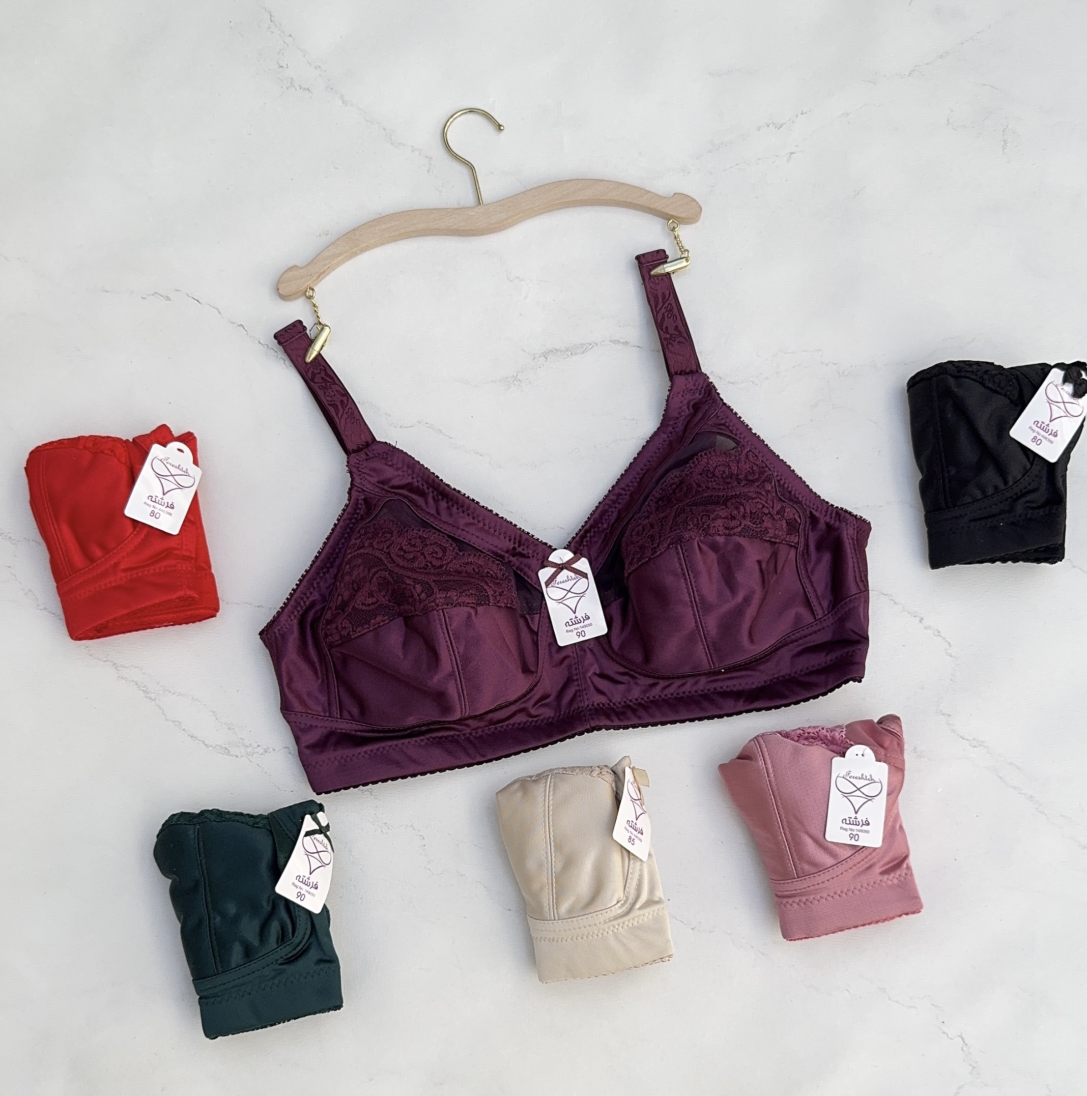 سوتین ژرسه برند فرشته داخل کار کاملا نخی ضد حساسیت ایستایی عالی کش ضد حساسیت و پهن سایزبندی موجود: ۹۰ رنگبندی موجود:کرم،مشکی،صورتی ،سبز کله غازی،قرمز