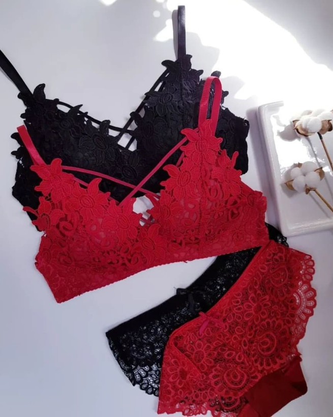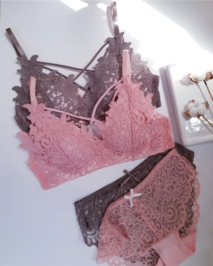 ست سوتین و شورت اسفنجی طرح دانتل گیپوری