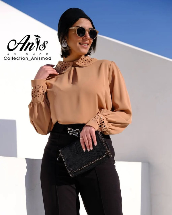 شومیز یقه ب ب لیزری .لطیف و نرم جنس کرپ الیزا گرم بالا.قواره بزرگ فری سایز تا 46