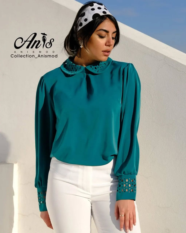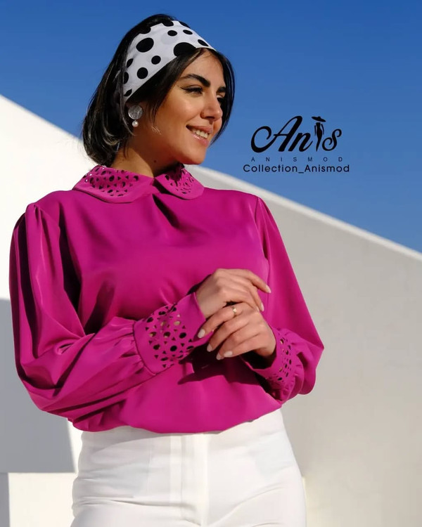 شومیز یقه ب ب لیزری جنس:کرپ الیزا گرم بالا فری سایز تا ۴۶ رنگبندی طبق تصویر
